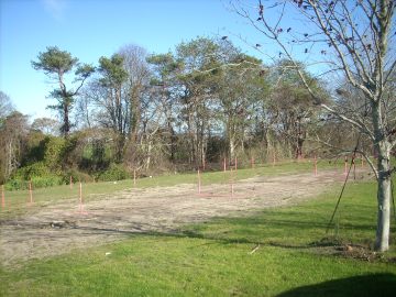 The site photo attached here is from a little more than a month ago and shows the lot staked out for site work to begin in the following week. If you look closely, you can see the footprint of the building spray painted on the ground. Not very exciting, especially in the knowledge that a flurry of interesting activity will shortly overtake that vacant land. Since the photo was snapped, construction is progressing, and we will periodically post photographs to show that progress.