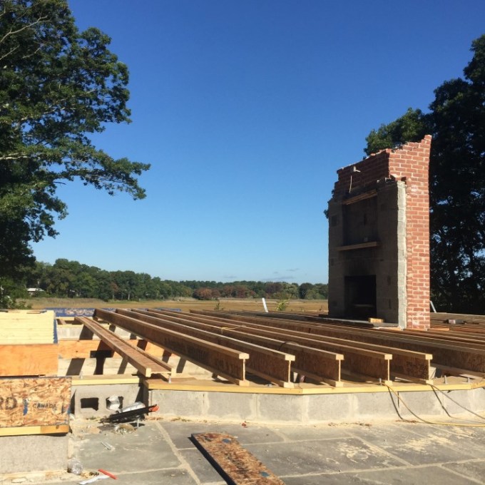Along the way, the first floor walls were ultimately let go and demolished, though the footprint of the foundation still, to large measure, controlled what could take form. Existing granite veneer was left standing, while the rest of the house was taken down to the top of the foundation, which was then raised with concrete block.