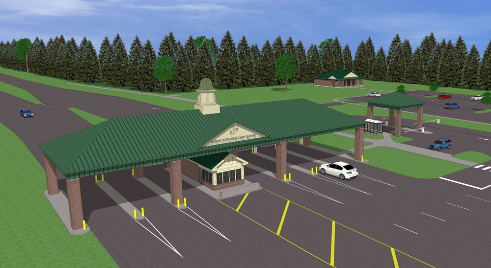 The project objective was to improve the physical security of Marine Corps Base Camp Lejeune by enhancing vehicle entry control and rearranging traffic flow to comply with current anti-terrorism/force protection (AT/FP) standards at the Main Gate and Piney Green Gate.