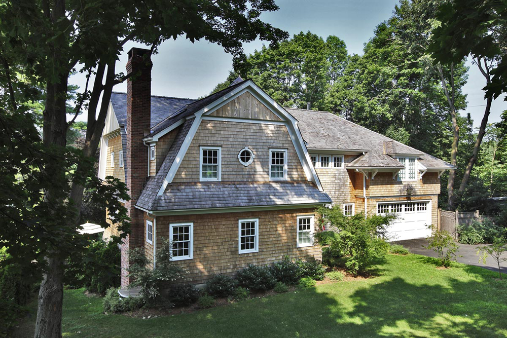 The homeowner sought to create a shingle style house where there originally stood a 1960’s speculative walk-out ranch. The scope of the project included the nearly doubling of the dwelling’s floor area, in large part by expanding the structure to an additional story.