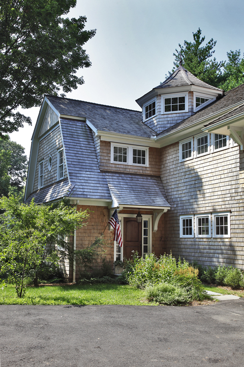 The homeowner sought to create a shingle style house where there originally stood a 1960’s speculative walk-out ranch. The scope of the project included the nearly doubling of the dwelling’s floor area, in large part by expanding the structure to an additional story.